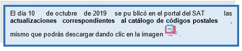 Dicha validación entra en vigor el día 14 de octubre de 2019, así mismo cabe destacar que la clave del código postal 00000 NO será válida a partir de tal fecha.