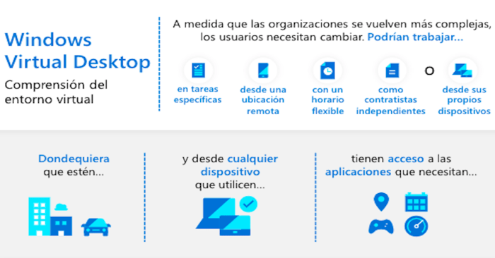 Microsoft innova continuamente para impulsar las mejores experiencias de su clase, sin importar dónde se encuentre. Conozca cómo puede maximizar la productividad en el entorno virtual con Windows Virtual Desktop.