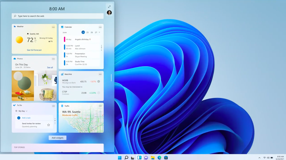 Así se ven los widgets en Windows 11.