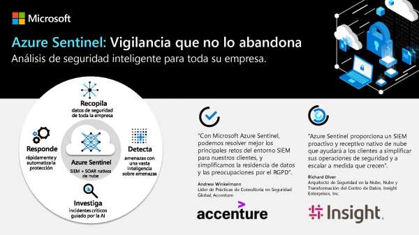 Azure Sentinel es análisis de seguridad inteligente para toda su empresa. Recopile datos, detecte amenazas, investigues los incidentes y responda rápidamente con Sentinel.