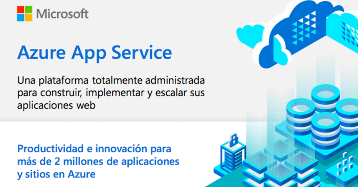 Esta infografía ilustra la flexibilidad, seguridad, integración y fiabilidad de primera clase de Azure App Service: una plataforma totalmente gestionada para crear, desplegar y escalar sus aplicaciones web.