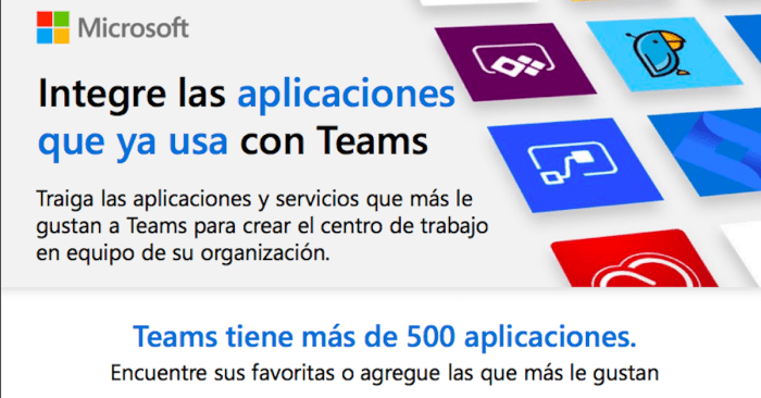 Esta infografía muestra cómo la integración de las aplicaciones le permite hacer más con Teams. Piense en las herramientas, archivos y paneles que ya utiliza. Muchos pueden agregarse directamente a Teams y pueden encontrarse en la tienda de aplicaciones de Teams Traiga las aplicaciones y servicios que más le gustan a Teams para crear el centro de trabajo en equipo de su organización.