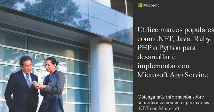 Utilice marcos populares como .NET, Java, Ruby, PHP o Python para crear e implementar con Microsoft App Service