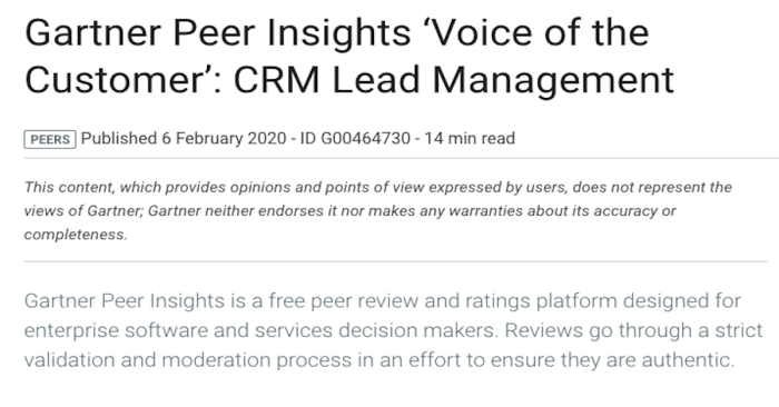 Gartner Peer Insights «La voz del cliente»: Administración de clientes potenciales con CRM