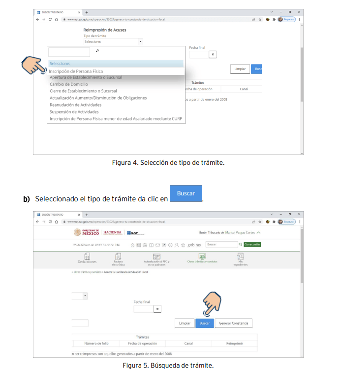 Una vez realizada la autenticación en el buzón tributario se muestra la consulta de