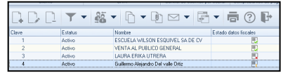 • En la consulta de clientes, se agrega la columna “Estado datos fiscales” en donde