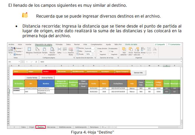 Hoja “Destino”: A diferencia de Origen, en este apartado se pueden ingresar diversos destinos.