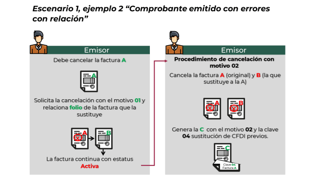 con errores sin relación. - Posteriormente, deberá emitir una nueva factura o CFDI con los datos