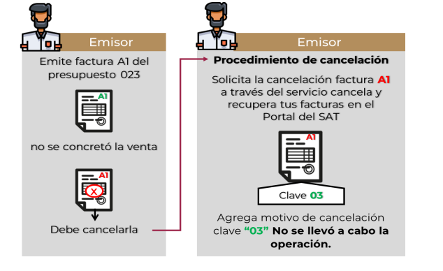 - Jesús Antonio deberá solicitar la cancelación de la factura “A1” a través del