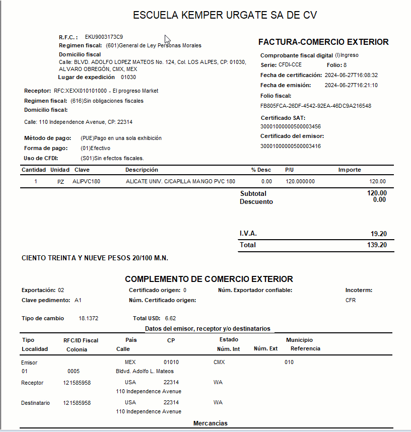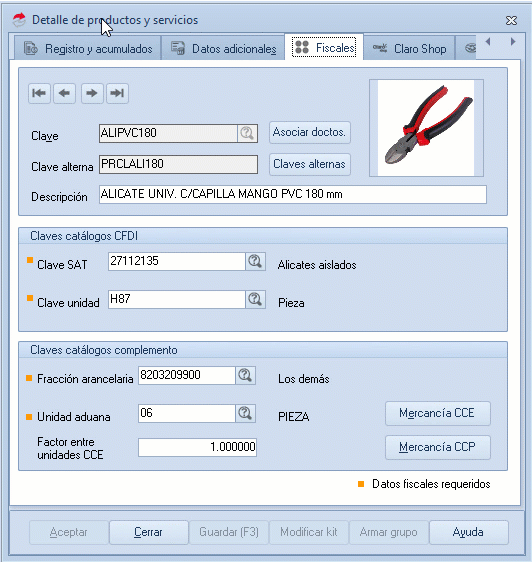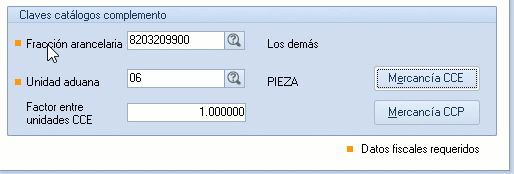 - Factor entre unidades CCE: Capturas la equivalencia o factor entre dos unidades de medida. Clave unidad vs. Unidad Aduana.
