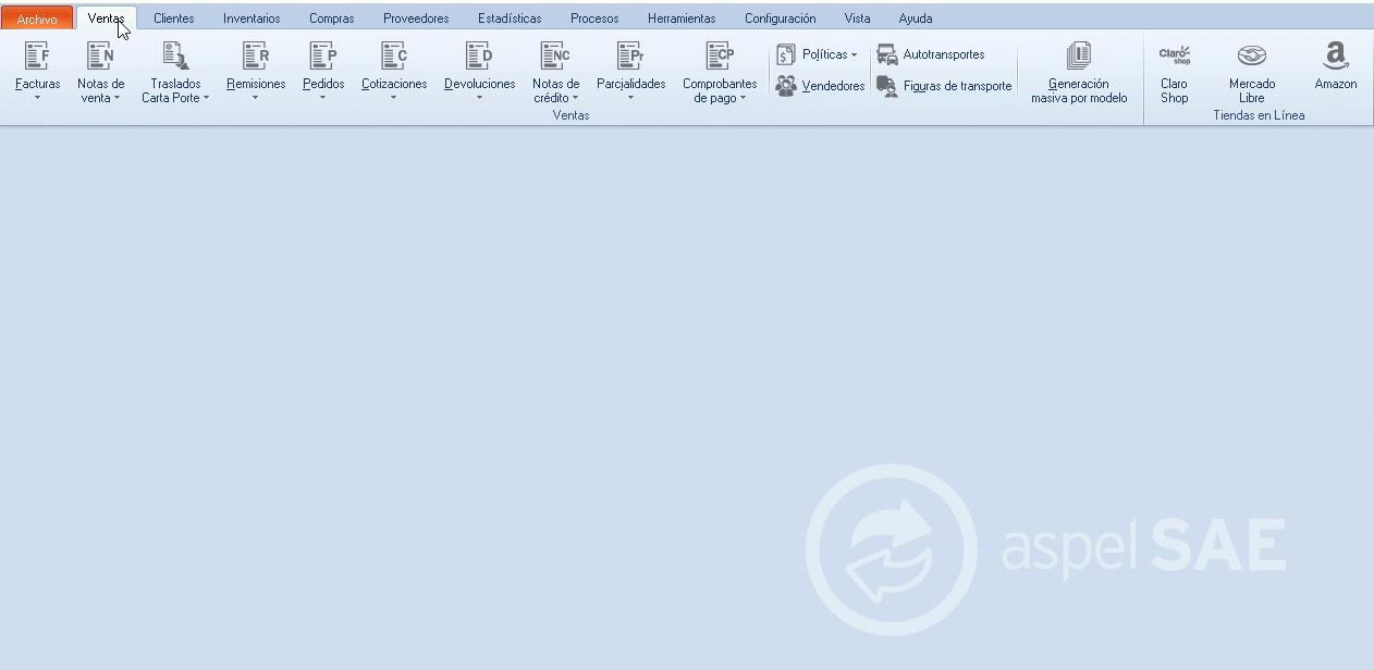 Menú Ventas, das clic en el ícono
