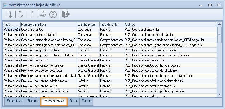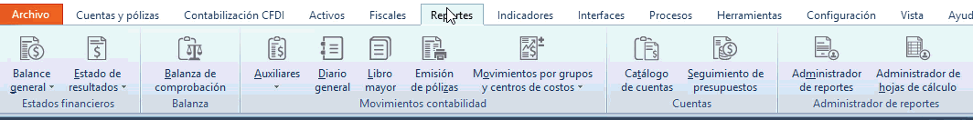 1. Preparar la plantilla de póliza dinámica, ve al menú Reportes, te diriges a Administrador de hojas de cálculo