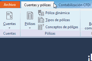 3. Crea la póliza desde uno o más CFDI, ve al menú Cuentas y pólizas y haz clic en Pólizas