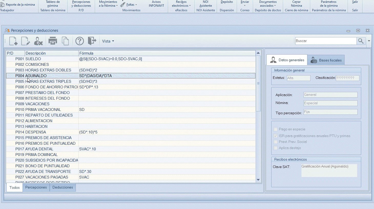 y en la pestaña Datos generales configuras la fórmula de acuerdo al tipo de nómina.