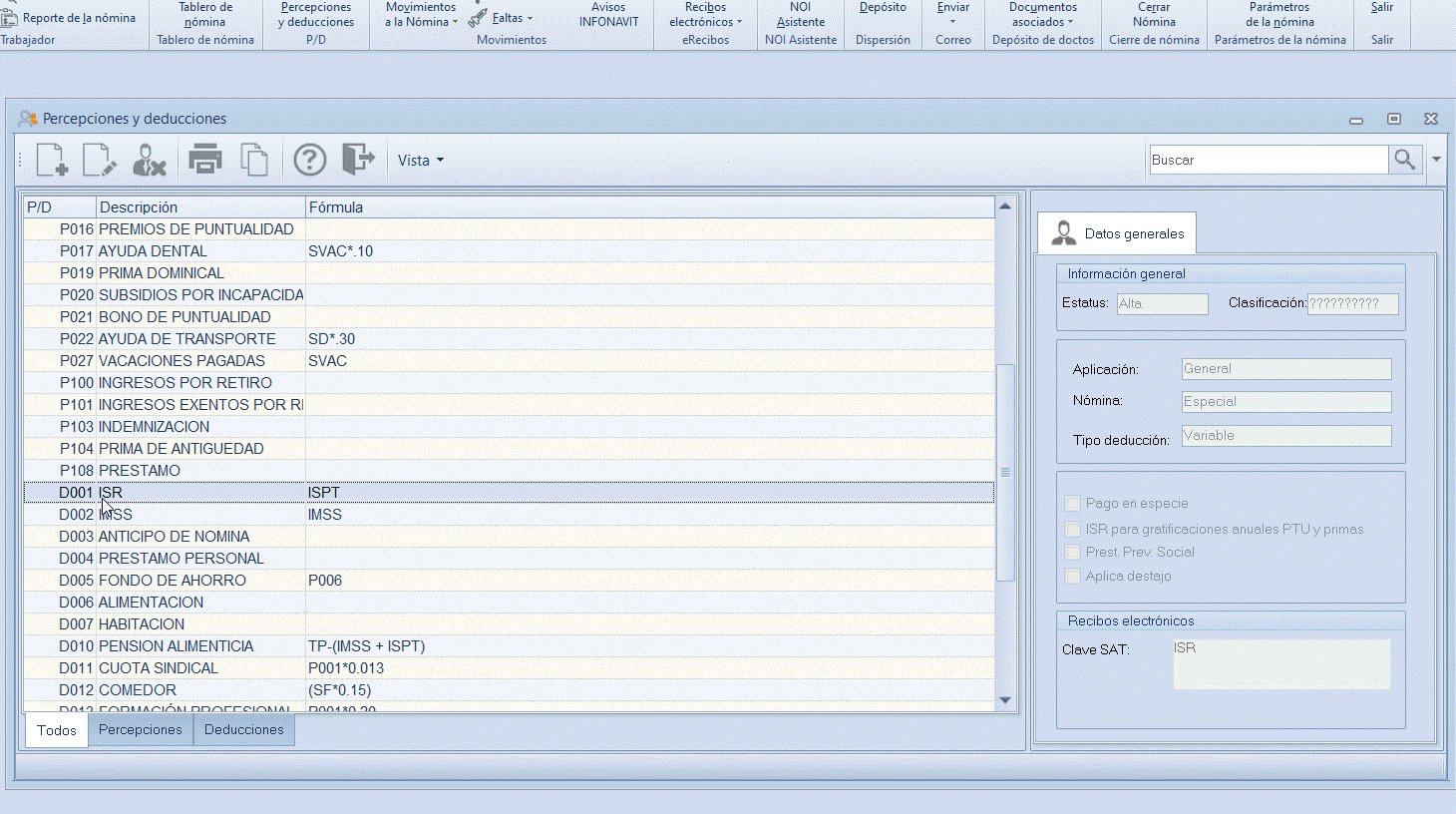 - Ingresa a la ruta: menú Nómina y das clic en el ícono Percepciones y deducciones
