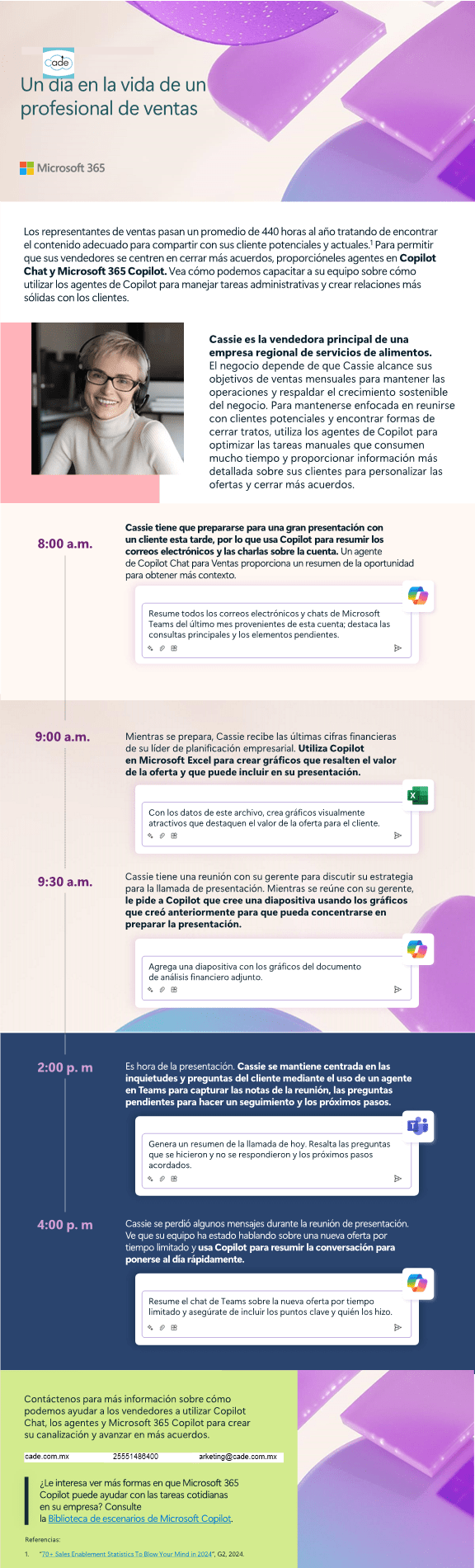 Asóciese con nosotros y enseñe a sus vendedores a usar agentes en #Copilot Chat y Microsoft 365 Copilot para automatizar tareas redundantes, adaptar las propuestas de los clientes y cerrar acuerdos más rápido. Obtenga más información en nuestra última infografía. #SociodeMicrosoft